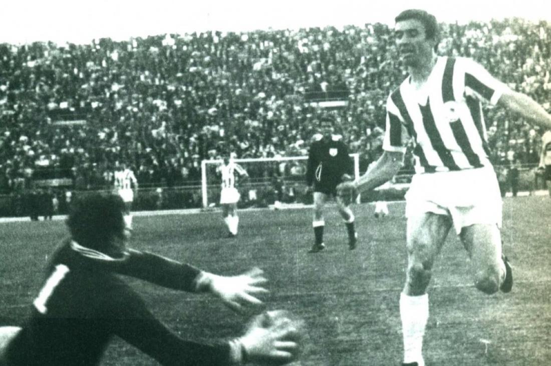 1965 Ο 24χρονος Νίκος Γιούτσος, που έχει μεταγραφεί από την ουγγρική Τσέπελ στον Ολυμπιακό, κάνει το ντεμπούτο του στον αγώνα εναντίον του Παναθηναϊκού. Ως παιδί πολιτικών προσφύγων με το όνομα Γιούτσοφ, θα χρειαστεί ειδική διαδικασία από το Υπουργείο Εξωτερικών για να αγωνισθεί. Με τους "ερυθρόλευκους" θα αναδειχθεί σε έναν από τους κορυφαίους Ελληνες ποδοσφαιριστές όλων των εποχών και η ιαχή "Έμπαινε Γιούτσο" θα γίνει σλόγκαν.