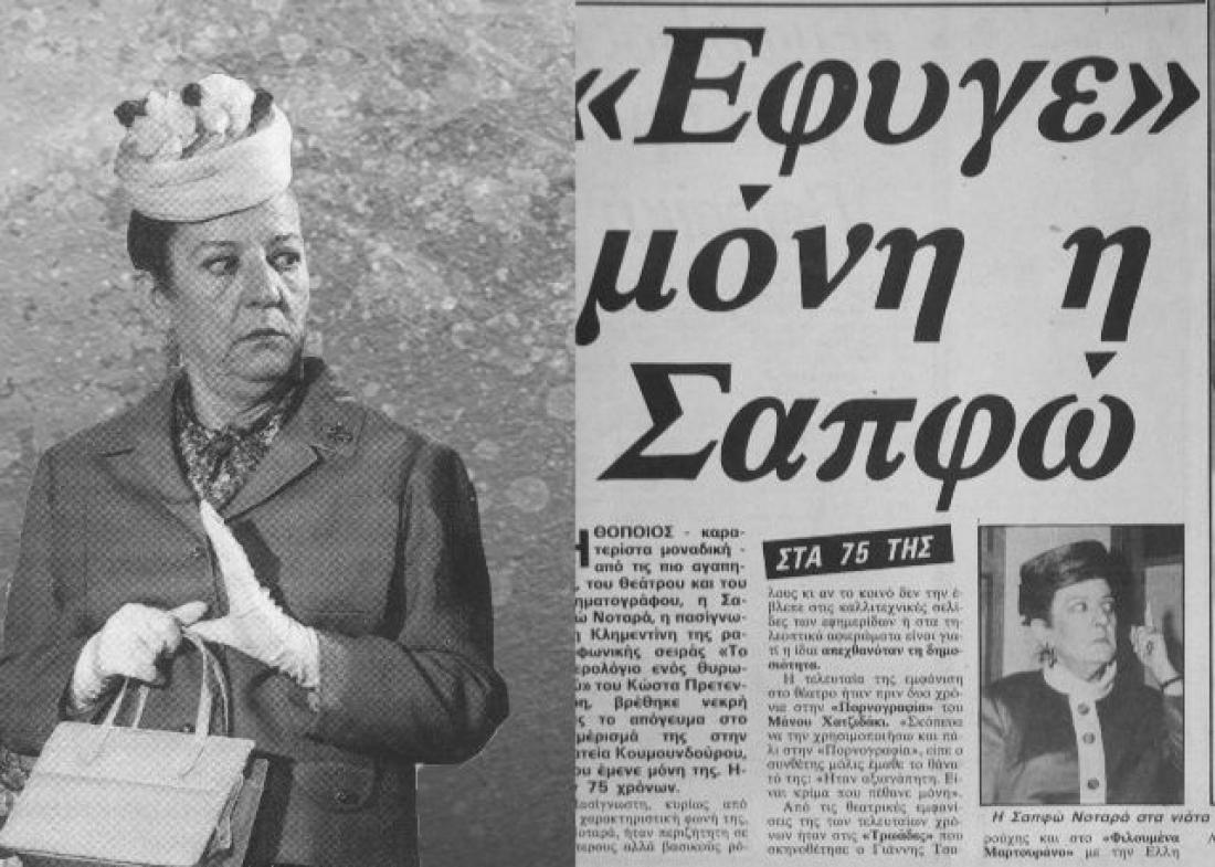 1985 Πέθανε η ηθοποιός, Σαπφώ Νοταρά