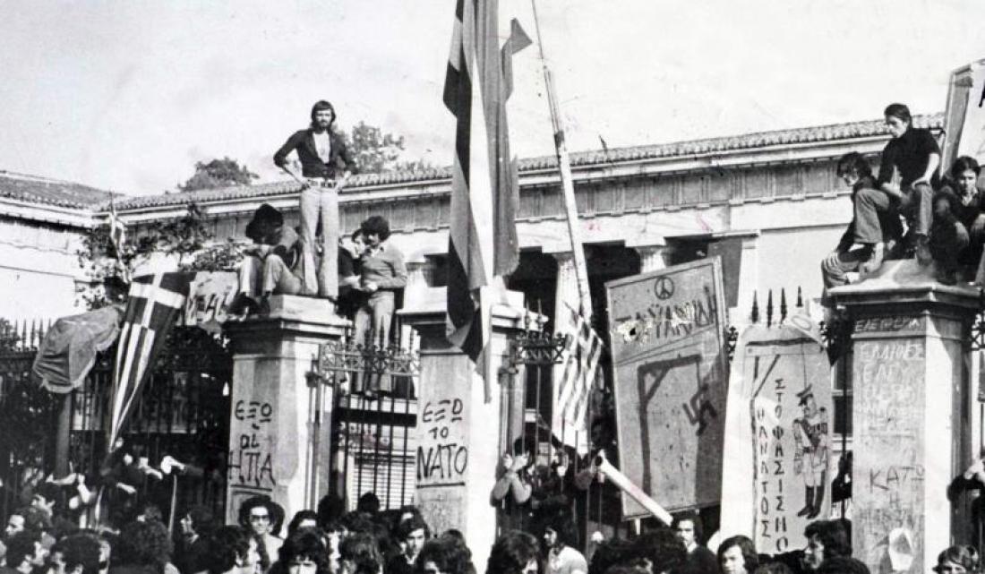 1973 "Εδώ Πολυτεχνείο".... Τα μεσάνυχτα τα τανκς περικυκλώνουν το Πολυτεχνείο, προκειμένου να καταστείλουν τη φοιτητική εξέγερση κατά της δικτατορίας. Οι φοιτητές καλούν τους στρατιώτες να ενωθούν μαζί τους. Ξημερώματα ένα τανκ γκρεμίζει την κεντρική πύλη.Υπάρχουν πολλοί νεκροί και εκατοντάδες τραυματίες. Η χούντα ανακοινώνει 16 νεκρούς, ενώ επανέρχεται ο στρατιωτικός νόμος από την κυβέρνηση Μαρκεζίνη.