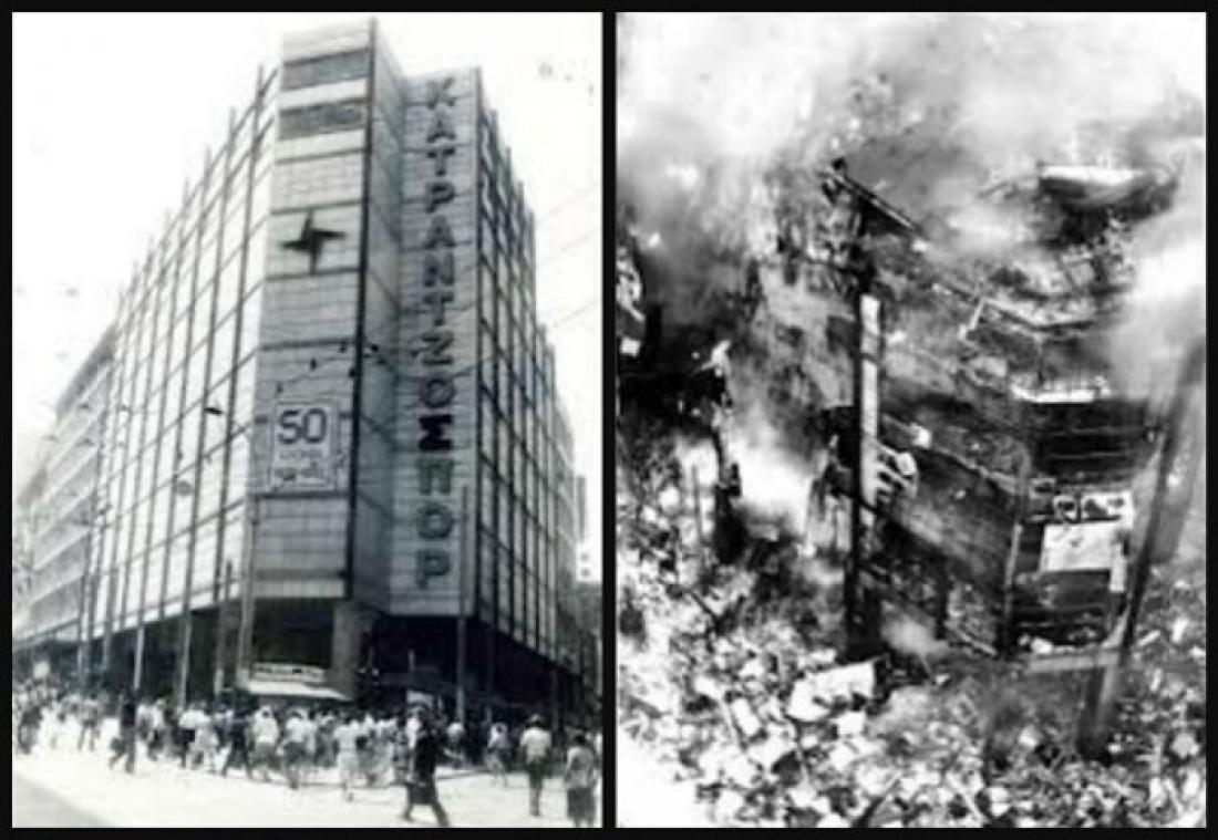 1980 Με ταυτόχρονες εκρήξεις εμπρηστικών βομβών, καταστρέφονται στην Αθήνα τα πολυκαταστήματα “Μινιόν” και “Κατράντζος”. Την ευθύνη για τις φωτιές αναλαμβάνει η “Επαναστατική Οργάνωση Οκτώβρης ’80”.