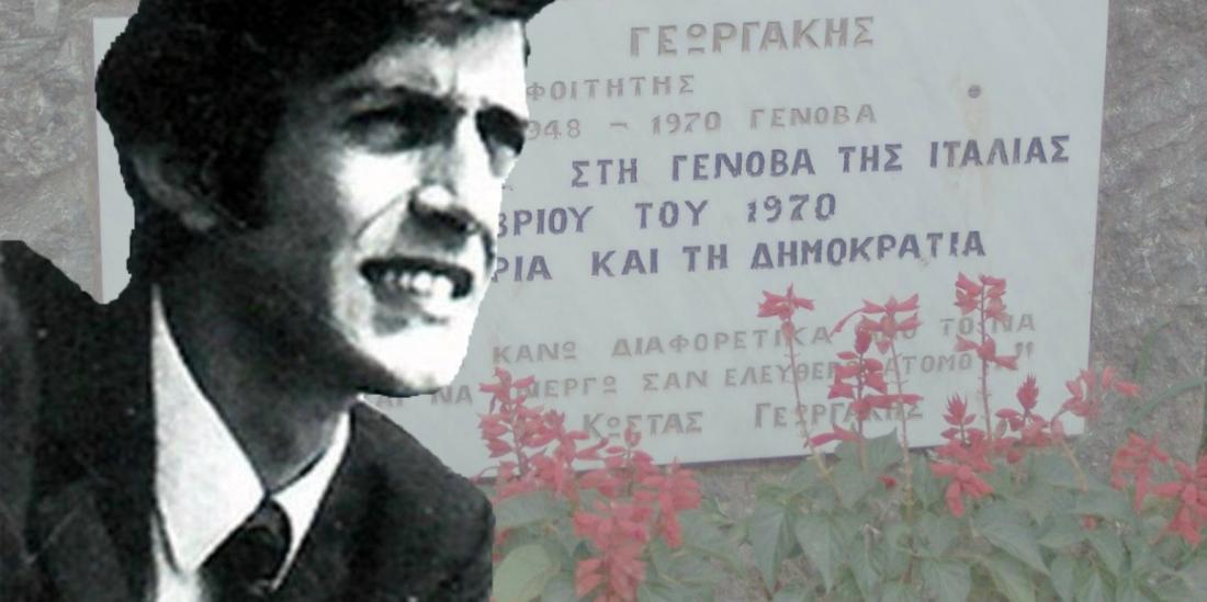 1970 Στη Γένοβα της Ιταλίας, ο φοιτητής Κώστας Γεωργάκης αυτοπυρπολείται, κραυγάζοντας «Ζήτω η ελεύθερη Ελλάδα», σε ένδειξη διαμαρτυρίας για το στρατιωτικό καθεστώς στην Ελλάδα.