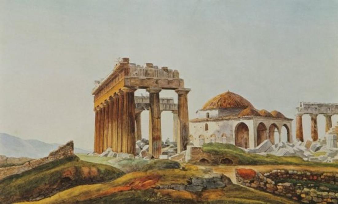 καταστροφή του Παρθενώνα από βόμβα των Ενετών που πολιορκούν την Ακρόπολη.