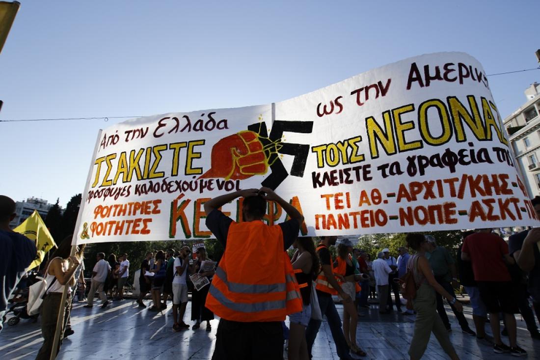 Σε εξέλιξη βρίσκεται αυτή την ώρα η πορεία για την επέτειο δολοφονίας του Π. Φύσσα από μέλη της Χρυσής Αυγής. Πλήθος κόσμου συγκεντρώθηκε στην Πλατεία Συντάγματος από συλλογικότητες, δημοτικές κινήσεις, την Πρωτοβουλία για το κλείσιμο των γραφείων της Χρυσής Αυγής, το ΚΕΕΡΦΑ, τον Σύλλογο Φυλακισθέντων και Εξορισθέντων Αντιστασιακών (ΣΦΕΑ), την ΑΔΕΔΥ, συνδικάτα, διάφορες οργανώσεις της εξωκοινοβουλευτικής αριστεράς και συλλογικότητες αντιεξουσιαστών, κοινότητες μεταναστών, φοιτητικοί σύλλογοι κλπ.
