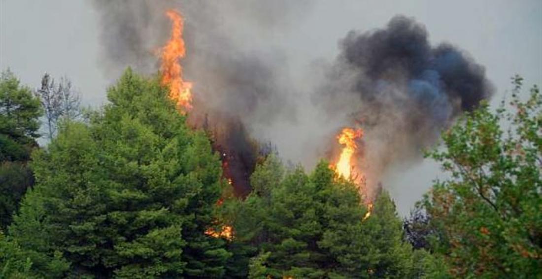 Σύμφωνα με πληροφορίες, η φωτιά καίει δασική έκταση και δεν απειλεί κατοικημένες περιοχές.