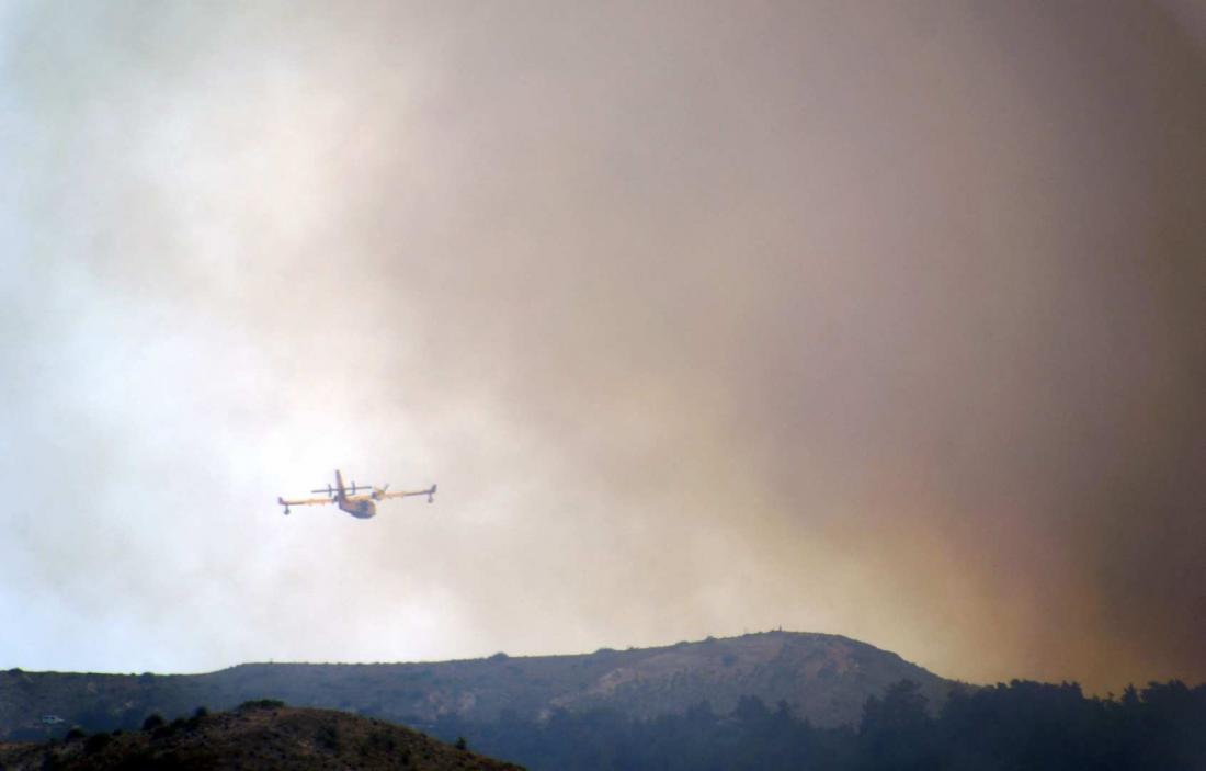 Για την κατάσβεσή της επιχειρούν τώρα 35 πυροσβέστες με 12 οχήματα, πεζοπόρο τμήμα 15 ατόμων, 3 αεροσκάφη και 2 ελικόπτερα .