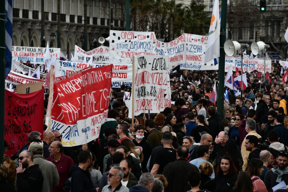 Σε εξέλιξη είναι στο Σύνταγμα το συλλαλητήριο για το σιδηροδρομικό δυστύχημα στα Τέμπη, με ανθρώπους κάθε ηλικίας να ζητούν να πέσει φως στη σύγκρουση των αμαξοστοιχιών με τους 57 νεκρούς.