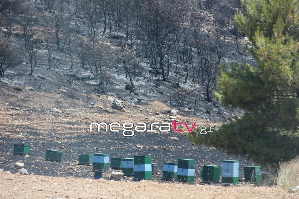 Πήγε να καπνίσει τα μελίσσια και έβαλε φωτιά στα Μέγαρα-Παραμένει σε εξέλιξη η πυρκαγιά