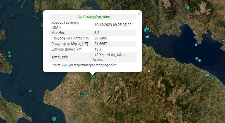 Σύμφωνα με την αναθεωρημένη λύση του Γεωδυναμικού Ινστιτούτου του Εθνικού Αστεροσκοπείου Αθηνών, ο σεισμός είχε μέγεθος 3,2 βαθμών της κλίμακας Ρίχτερ και το επίκεντρο εντοπίστηκε 13 χιλιόμετρα νότια της Κάτω Αχαΐας.