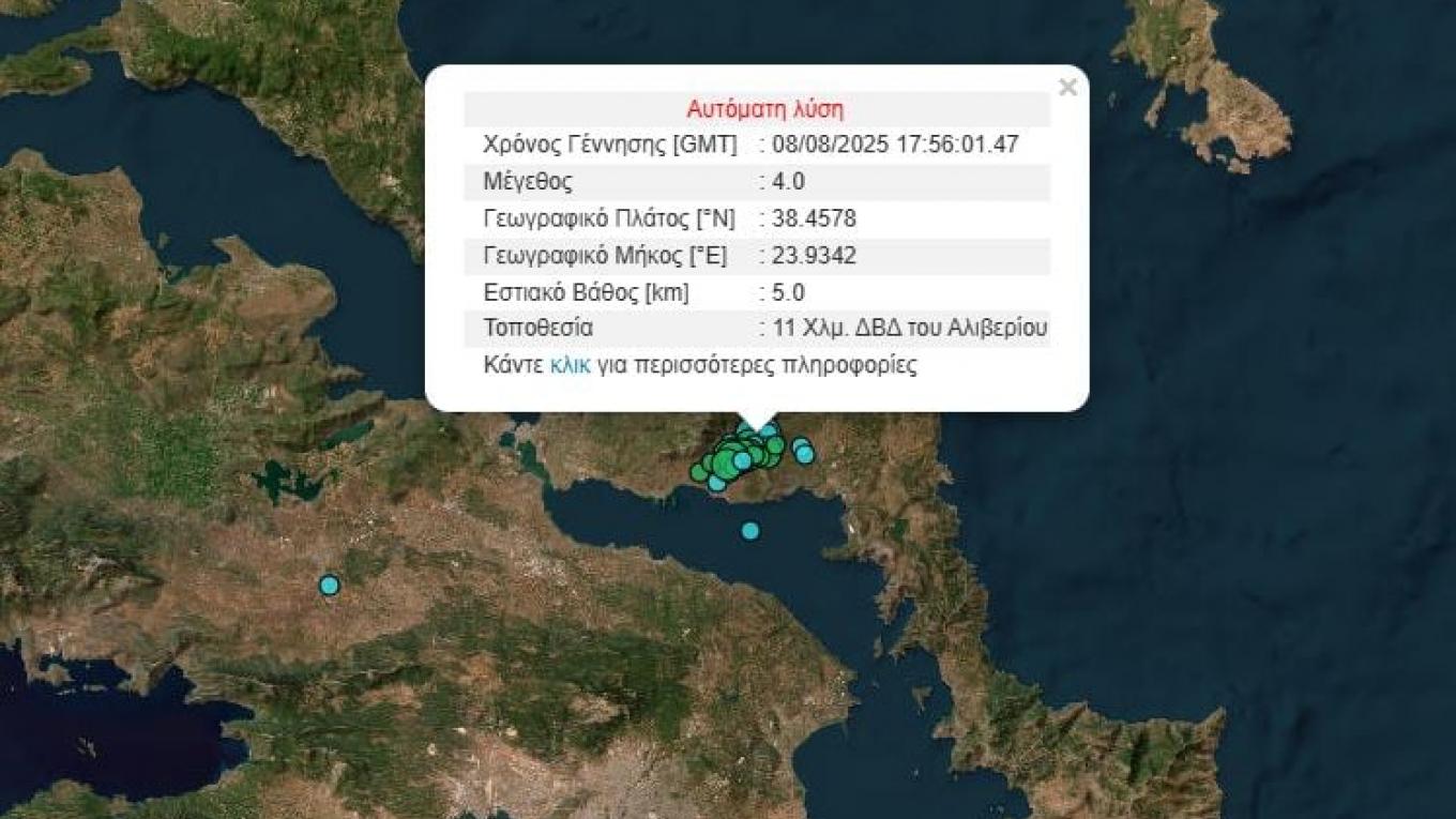 Σεισμός 4 Ρίχτερ στην Εύβοια, βορειοδυτικά του Αλιβερίου