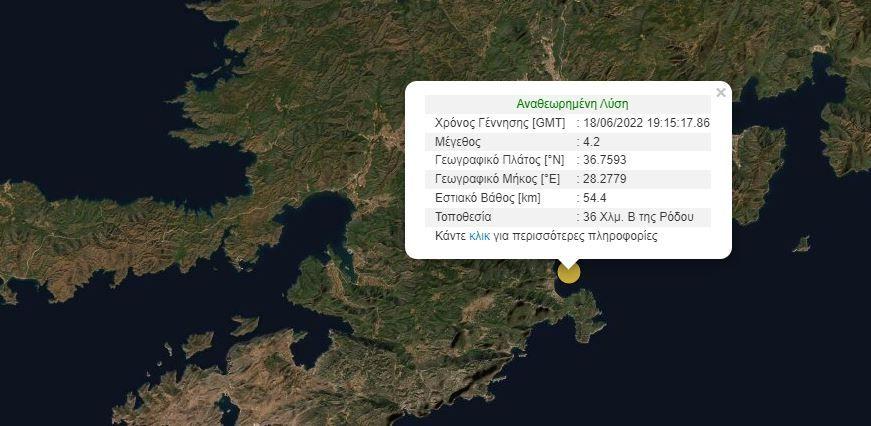 Σεισμική δόνηση 4,2 βαθμών της κλίμακας Ρίχτερ σημειώθηκε νωρίτερα στο θαλάσσιο χώρο ανοικτά της Ρόδου.