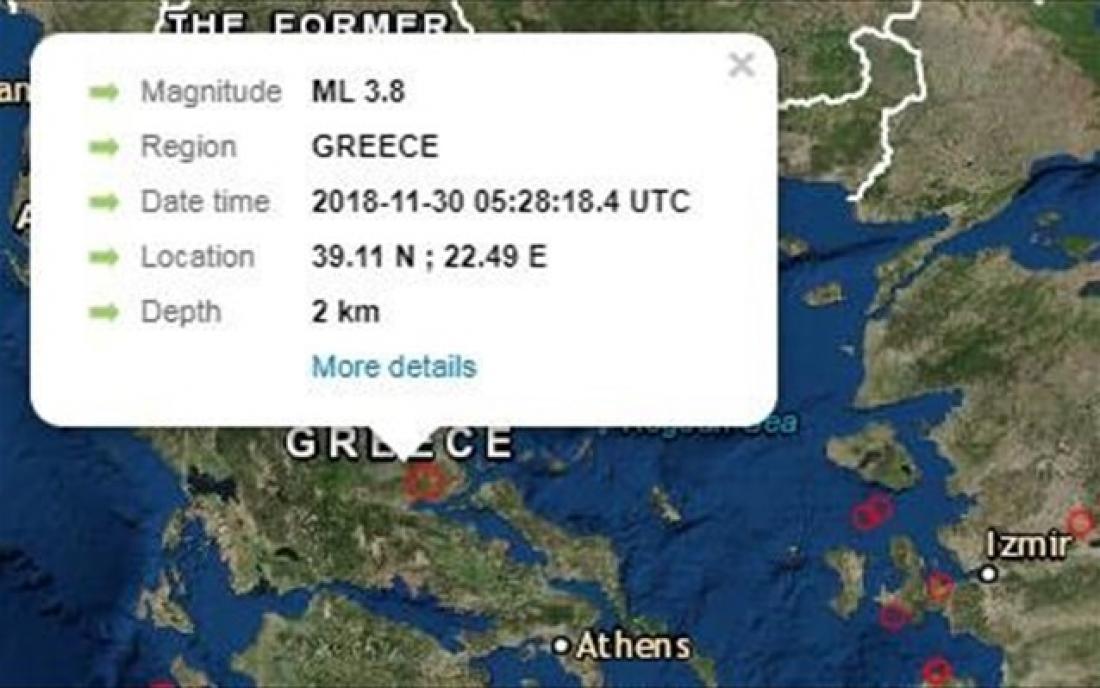 Σεισμός τώρα : Σεισμός 3,8 βαθμών της κλίμακας Ρίχτερ σημειώθηκε σήμερα το πρωί στις 7.28' κοντά στον Δομοκό.