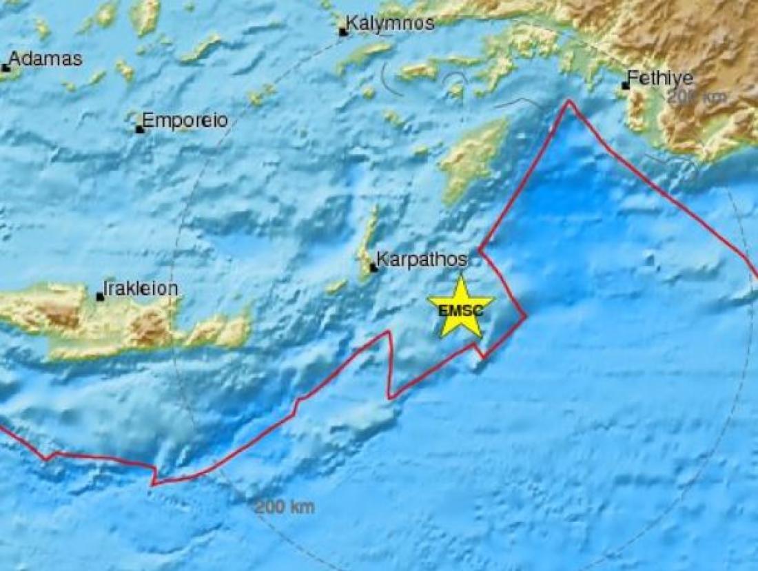 Το επίκεντροτου σεισμού βρέθηκε 64 χιλιόμετρα ανατολικά-νοτιοανατολικά της Καρπάθου και 478 χιλιόμετρα νοτιοανατολικά της Αθήνας.
