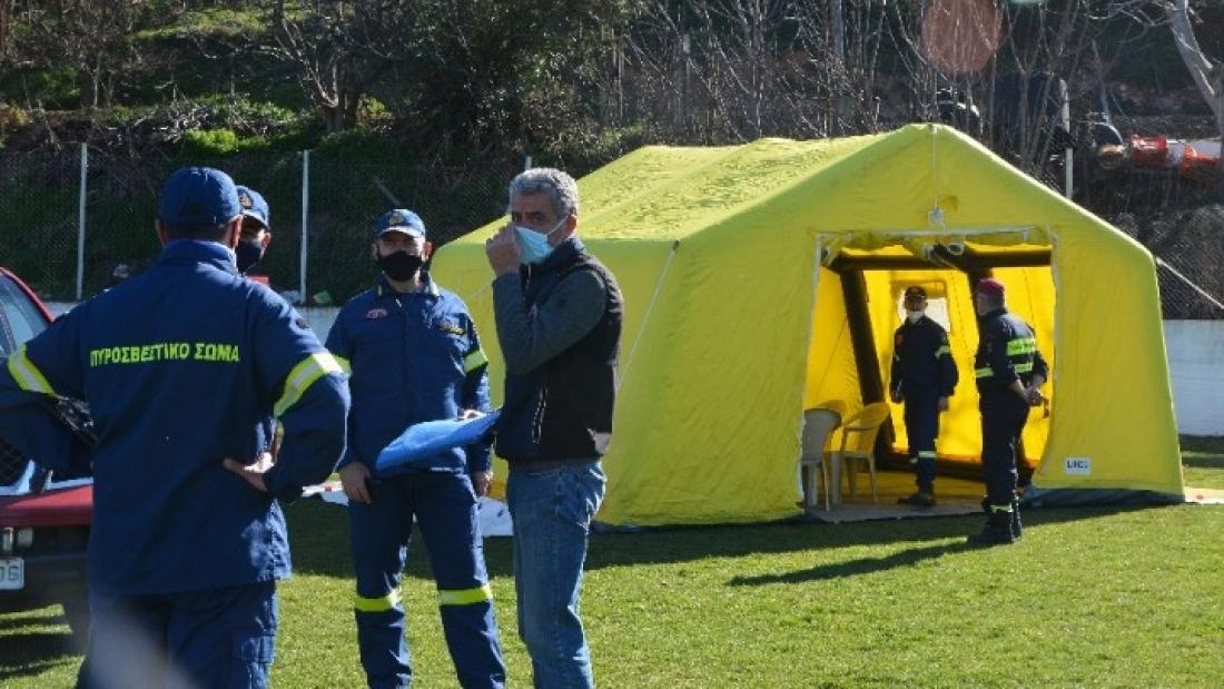 Σεισμός στην Ελασσόνα: Στήθηκαν σκηνές στο γήπεδο Δαμασίου για τη διανυκτέρευση των κατοίκων