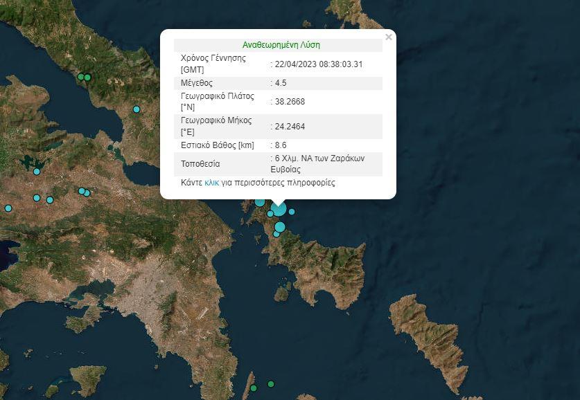 Σεισμός μεγέθους 4,5 βαθμών της κλίμακας Ρίχτερ έγινε στις 11:38 το πρωί του Σαββάτου στην Εύβοια.