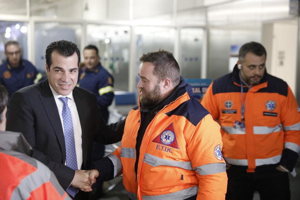 Συγκεκριμένα, στο αεροδρόμιο βρίσκονται μεταξύ άλλων ο υπουργός Κλιματικής Κρίσης και Πολιτικής Προστασίας, Χρήστος Στυλιανίδης, ο υπουργός Υγείας, Θάνος Πλεύρης, ο υφυπουργός Κλιματικής Κρίσης και Πολιτικής Προστασίας, Ευάγγελος Τουρνάς, ο γενικός γραμματέας Πολιτικής Προστασίας, Βασίλης Παπαγεωργίου, ο αρχηγός του Πυροσβεστικού Σώματος, αντιστράτηγος, Γεώργιος Πουρναράς, ο προϊστάμενος κλάδου επιχειρήσεων του αρχηγείου Πυροσβεστικού Σώματος, υποστράτηγος Αθανάσιος Μπαλάφας, καθώς και ο διευθυντής Ιατρικών Υπηρεσιών του ΕΚΑΒ, Δημήτρης Πύρρος.