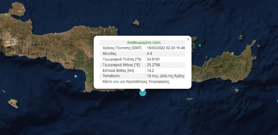 Σεισμός τώρα: Σεισμική δόνηση μεγέθους 4,6 Ρίχτερ σημειώθηκε στις 4:20 τα ξημερώματα της Τετάρτης (16/3) 18χλμ δυτικά-νοτιοδυτικά της Άρβης, με εστιακό βάθος 14,2χλμ., σύμφωνα με ενημέρωση του Γεωδυναμικού Ινστιτούτου.