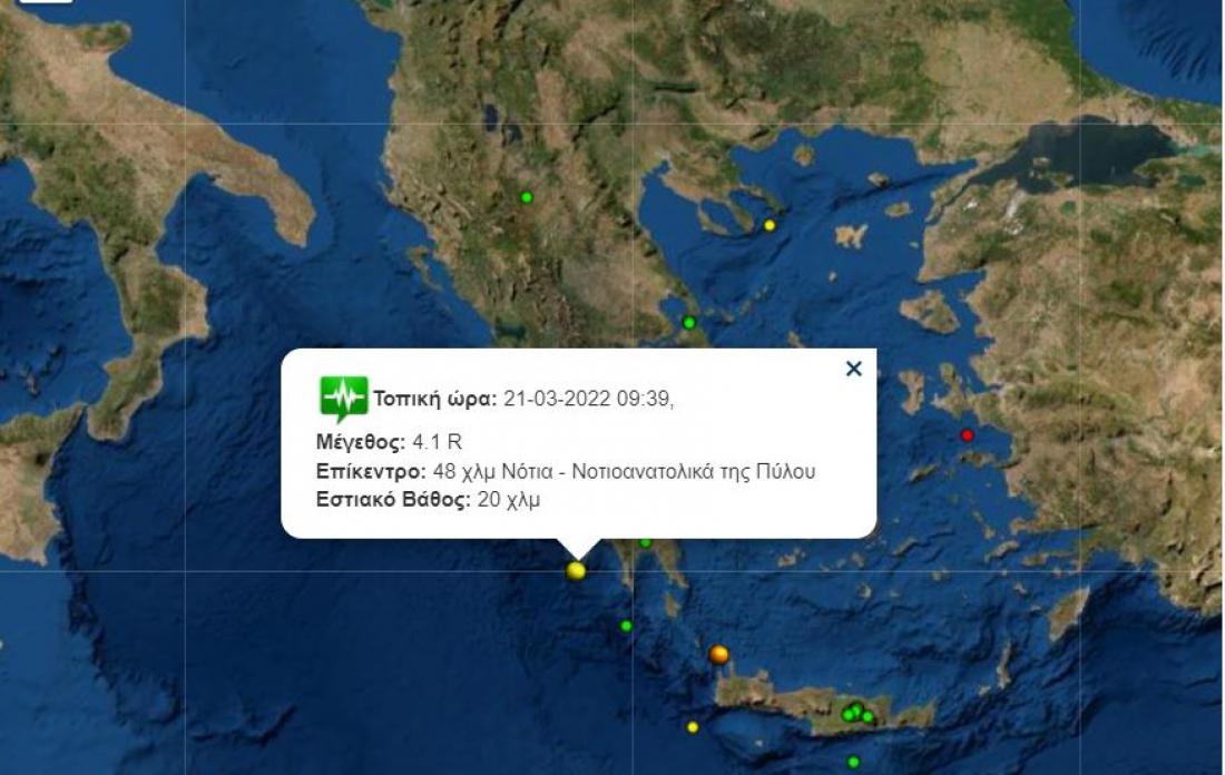 Σεισμός τώρα: Σεισμική δόνηση 4,1 Ρίχτερ σημειώθηκε πριν από λίγο στα ανοιχτά της Πύλου.