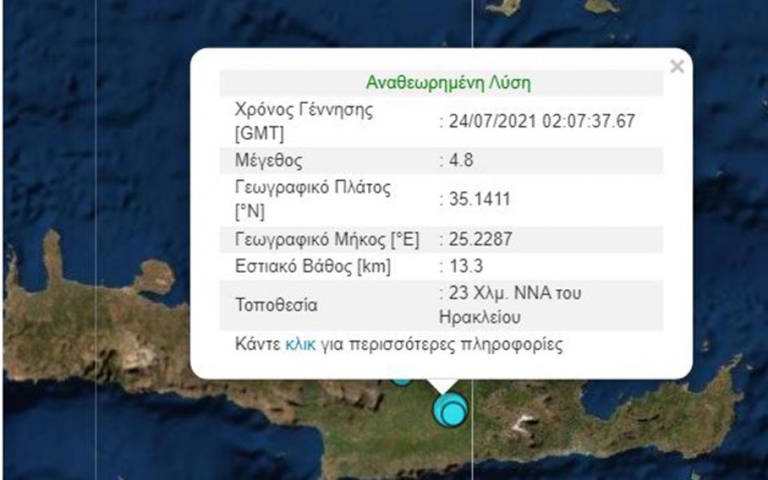 Σεισμός τώρα: Σεισμική δόνηση 4,8 βαθμών της κλίμακας Ρίχτερ σημειώθηκε στις 5.07 το πρωί, 22 χλμ. νότια νοτιοανατολικά του Ηρακλείου.