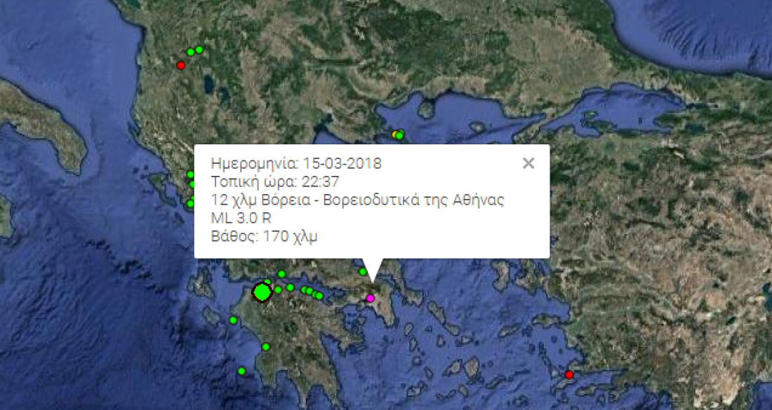 Αυτή τη φορά το επίκεντρο δεν ήταν βορειοανατολικά από Αθήνα με επίκεντρο την Σταμάτα όπου πριν από δύο σχεδόν μήνες οι κάτοικοι είχαν τρομοκρατηθεί από τις αλλεπάλληλες σεισμικές δονήσεις, με πιο δυνατή εκείνη των 4,4 βαθμών της κλίμακας Ρίχτερ της 16/01/18, αλλά σημειώθηκε βορειοδυτικά της πρωτεύουσας και είχε μέγεθος 3,0 βαθμών της κλίμακας Ρίχτερ με επίκεντρο 12 χλμ Βόρεια-Βορειοδυτικά της Αθήνας με σχετικά μεγάλο εστιακό βάθος