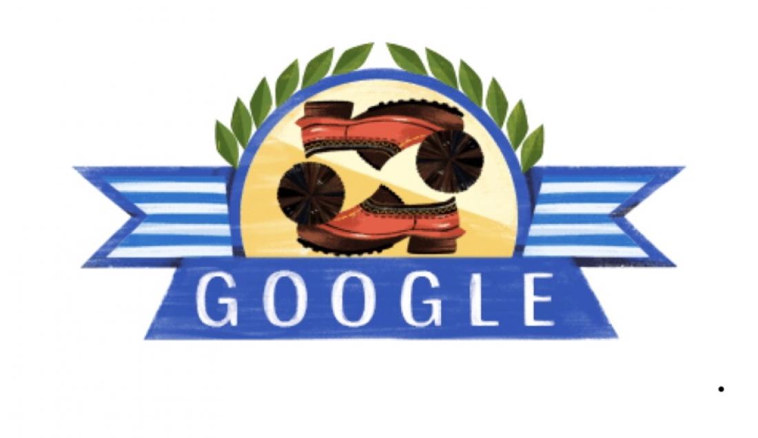 Μάλιστα το doodle έχει ως βασικό στοιχείο ένα ζευγάρι τσαρούχια και τα χρώματα που κυριαρχούν είναι το μπλε και το λευκό, δηλαδή τα χρώματα της γαλανόλευκης σημαίας μας.