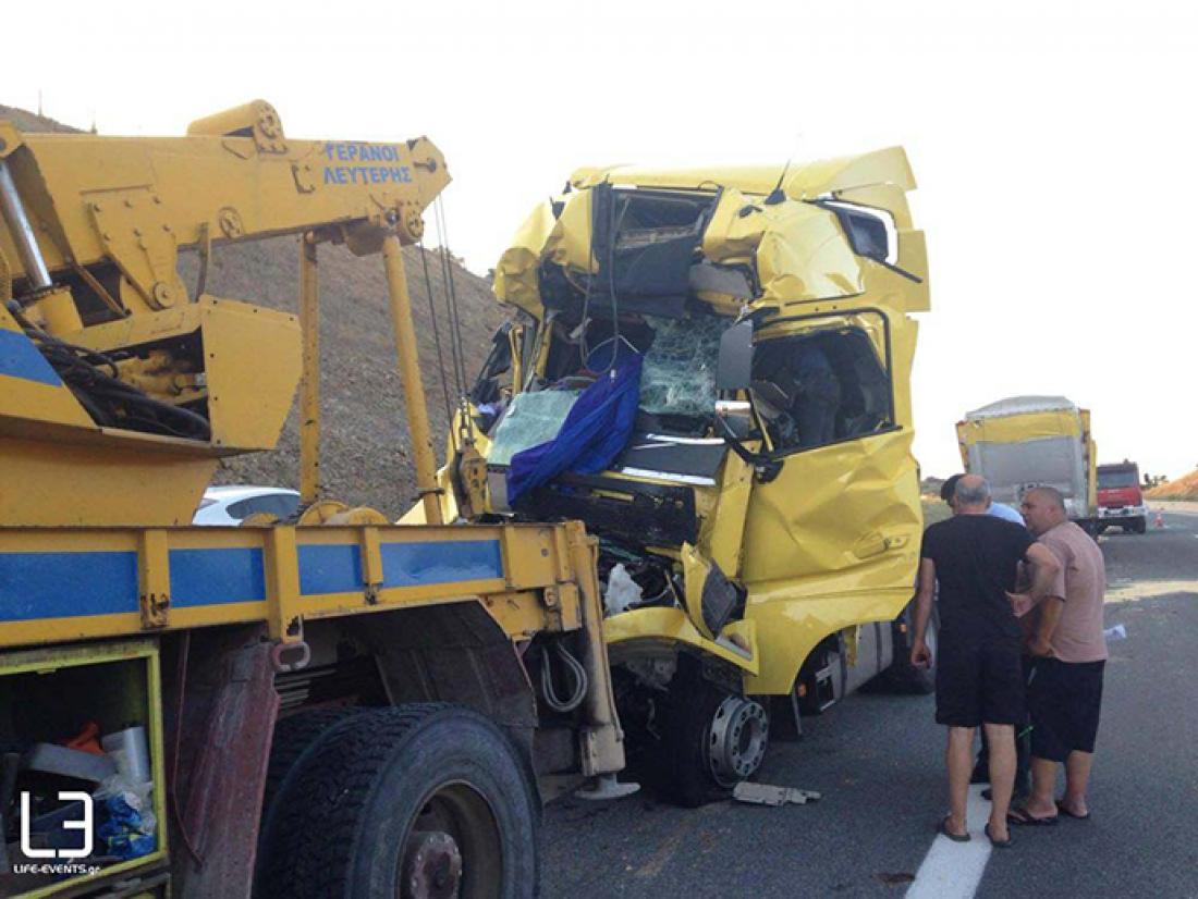 Σφοδρή σύγκρουση φορτηγών στην Εθνική Θεσσαλονίκης Σερρών - Νεκρός ο ένας οδηγός