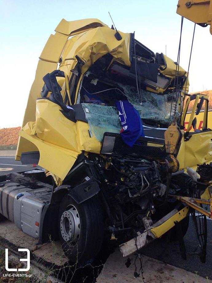 Νεκρός είναι ο οδηγός νταλίκας που συγκρούστηκε με προπορευόμενη νταλίκα στο 15χλμ του κάθετου άξονα Θεσσαλονίκης – Σερρών.