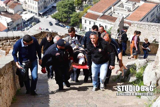 Σύμφωνα με πληροφορίες argolikeseidhseis, το σημείο έσπευσε ασθενοφόρο του ΕΚΑΒ και με την βοήθεια πυροσβεστών από την Πυροσβεστική Υπηρεσία Ναυπλίου, καθηγητών του σχολείου και των αρχαιοφυλάκων μεταφέρθηκε με φορείο στην είσοδο του κάστρου.