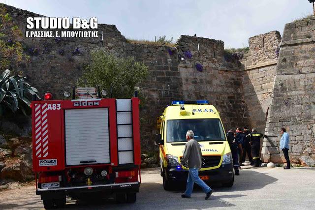 Μία από σχολείο του Ασπρόπυργου Αττικής, για άγνωστο λόγο, γλίστρησε στα σκαλιά του κάστρου Παλαμηδίου στο Ναύπλιο, με αποτέλεσμα να χτυπήσει σοβαρά στο κεφάλι της.