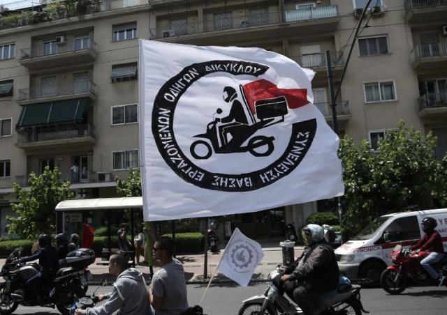 Ραντεβού στο Πεδίον του Άρεως έδωσαν σήμερα οι ντελιβεράδες της Αθήνας σε μια πρωτοφανή απεργιακή κινητοποίηση στην Ελλάδα του ΣΥΡΙΖΑ.