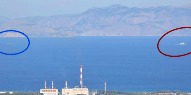 Το παρακολουθεί σκάφος του Λιμενικού Σώματος .