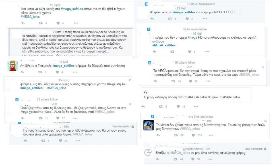 Πολλή κουβέντα στα μέσα κοινωνικής δικτύωσης (και στο διαδίκτυο) με αφορμή τις δραματικές εξελίξεις στο Mega και το πιθανό λουκέτο. Σωρευμένη αγανάχτηση για επιλογές και απόψεις του καναλιού ή τοποθέτησή του σε σημαντικά πολιτικοκοινωνικά ζητήματα, εκφράστηκε με πληθώρα σχολίων και αναρτήσεων που εκφράζουν ικανοποίηση και χαρά για το (ενδεχόμενο) κλείσιμο του καναλιού. Ενας κοινωνικός αυτοματισμός που έφτασε στο σημείο να εξισώνει εργαζόμενους και ευθύνες και να ταυτίζει συλλήβδην τους εργαζόμενους με κεντρικές επιλογές του καναλιού. Αυτός ο νοσηρός κοινωνικός αυτοματισμός εκφράζεται (και) μέσα από το hashtag «mega-xeftiles».