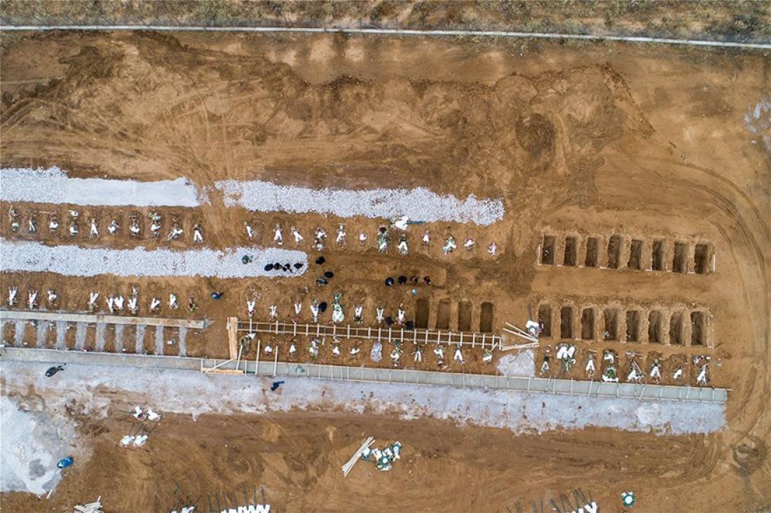 Ανοιχτοί τάφοι που περιμένουν νέους νεκρούς. Κάποιοι, ήδη έχουν χρησιμοποιηθεί από ανθρώπους που έχουν χάσει τη «μάχη» με τον κορωνοϊό.