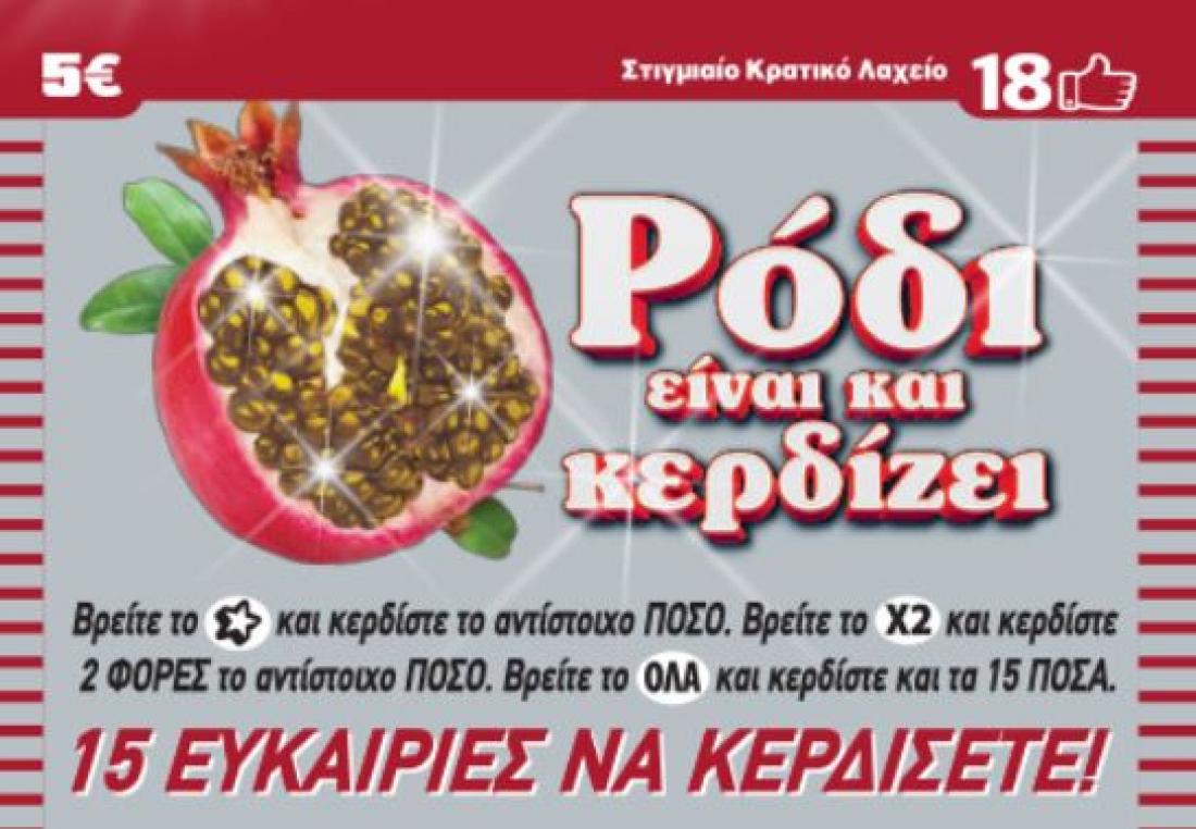 Το «Ρόδι είναι και κερδίζει», αξίας πέντε ευρώ, με κέρδη έως 250.000 ευρώ