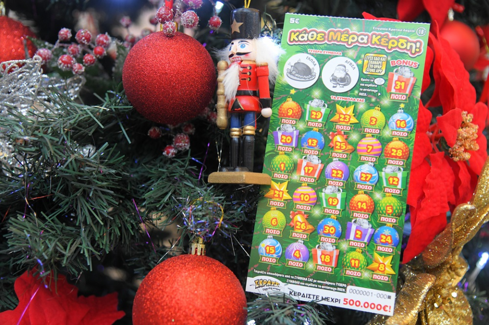 Το ΣΚΡΑΤΣ ημερολόγιο «ΚΑΘΕ ΜΕΡΑ ΚΕΡΔΗ», το οποίο κοστίζει 5 ευρώ, μοιράζει κέρδη έως και 500.000 ευρώ. Οι παίκτες αποκαλύπτουν ένα πεδίο κάθε ημέρα, σαν μια αντίστροφη μέτρηση για τη νέα χρονιά. Υπάρχουν 30 συν 1 ευκαιρίες για κέρδη.
