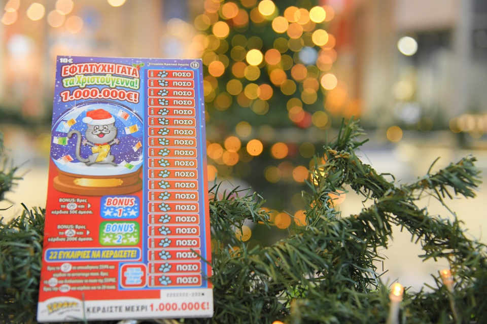 Τέλος, το ΣΚΡΑΤΣ «ΕΦΤΑΤΥΧΗ ΓΑΤΑ τα Χριστούγεννα!» κοστίζει 10 ευρώ, με το μέγιστο έπαθλο που μπορεί να διεκδικήσει κάποιος να ανέρχεται σε 1.000.000 ευρώ.