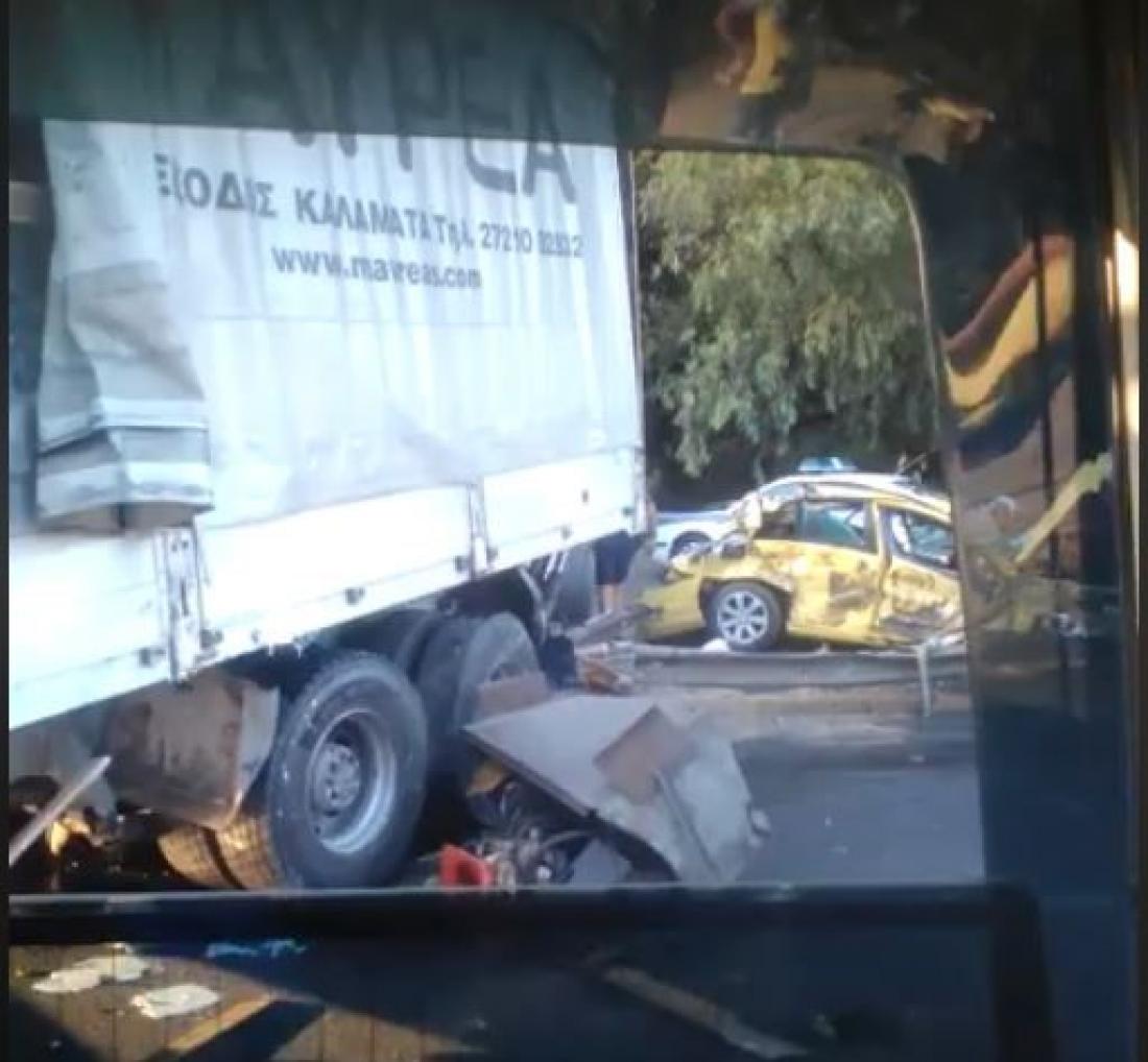 Σύμφωνα με τις πρώτες πληροφορίες, το τροχαίο σημειώθηκε μεταξύ φορτηγού που εκινείτο στο ρεύμα προς Κόρινθο και ενός ταξί. Το φορτηγό, όπως αναφέρουν οι εξετράπη κάτω από άγνωστες μέχρι στιγμής συνθήκες της πορείας του, πέρασε πάνω από το διαχωριστικό κιγκλίδωμα και ντεραπάρισε στο οδόστρωμα του ρεύματος κυκλοφορίας προς Αθήνα.