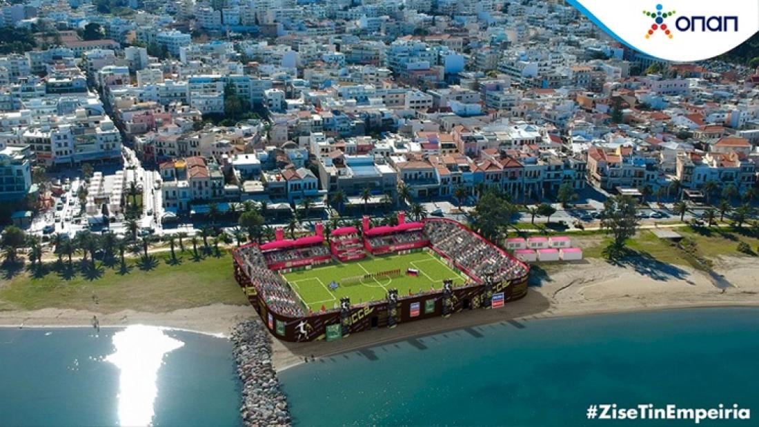 Ένα υπερσύγχρονο, εντυπωσιακό στάδιο χωρητικότητας 4.000 θεατών έχει ήδη ξεκινήσει να στήνεται στην παραλία του Ρεθύμνου για το Socca World Cup 2019, μία από τις μεγαλύτερες αθλητικές διοργανώσεις που φιλοξενούνται στην Ελλάδα τα τελευταία δέκα χρόνια, η οποία πραγματοποιείται με χορηγό τον ΟΠΑΠ.