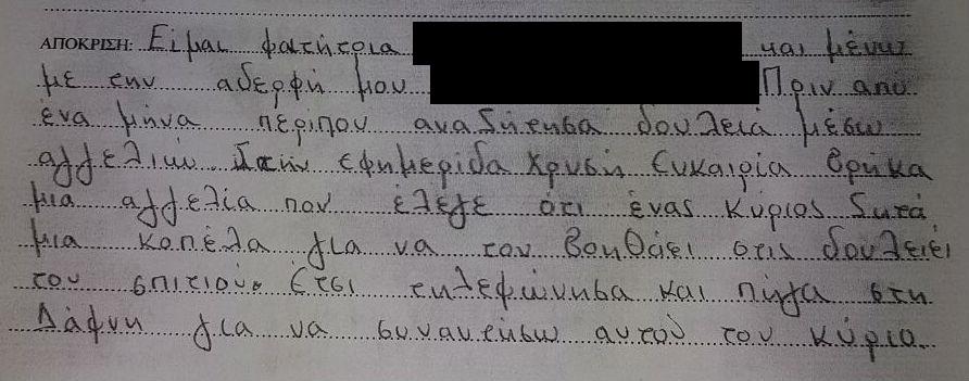 Η νεαρή κοπέλα αποκαλύπτει πως πριν από περίπου ένα μήνα αναζήτησε δουλειά μέσω αγγελίας και βρήκε αυτή που είχε βάλει ο 52χρονος, ο οποίος έψαχνε κοπέλα για να τον βοηθάει στις δουλειές του σπιτιού.