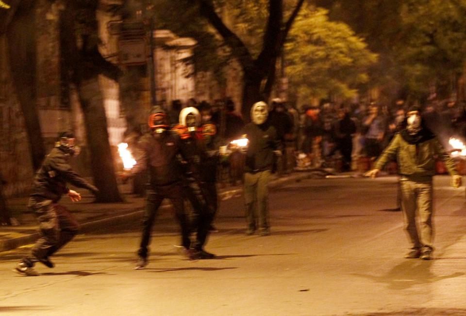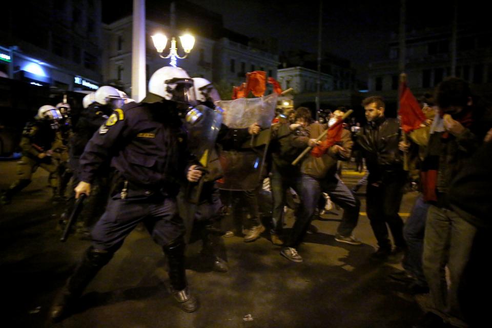 Η κεφαλή των διαδηλωτών της εξωκοινοβουλευτικής αριστεράς των φοιτητικών συλλόγων κλπ. επιχείρησε να σπάσει εκ νέου τον φραγμό και επιτέθηκε στα ΜΑΤ που απάντησαν με χρήση δακρυγόνων, αποθώντας τους νεαρούς, ωστόσο αντιεξουσιαστές εκτόξευσαν βόμβες μόλοτοφ από την ουρά της διαδήλωσης προς τις διμοιρίες και έτσι εκτυλίχθηκαν σοβαρά επεισόδια με χρήση χημικών και συγκρούσεις σώμα με σώμα.