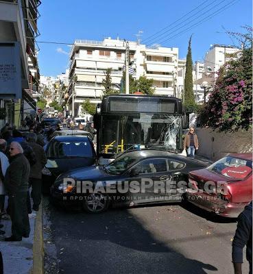 Σοβαρό τροχαίο στον Πειραιά – Λεωφορείο χωρίς οδηγό παρέσυρε τα πάντα στο πέρασμά του