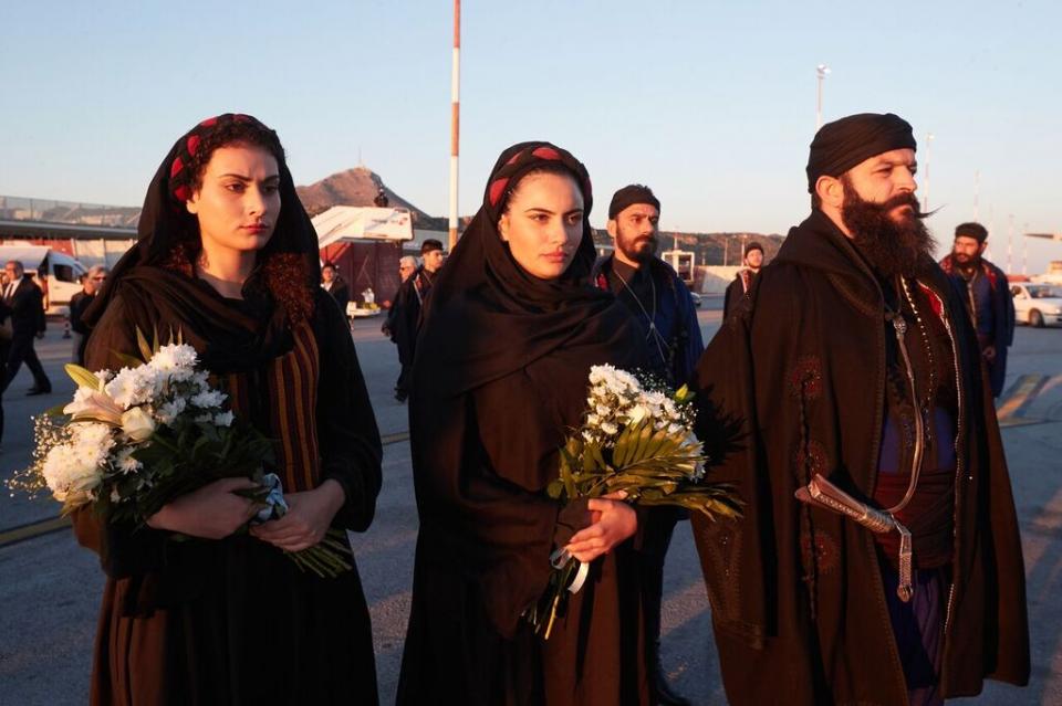 Μετά την απόδοση τιμών από άγημα της Πολεμικής Αεροπορίας, σχηματίσθηκε τιμητική πομπή εν μέσω χειροκροτημάτων, και η σορός μεταφέρθηκε στον ιερό ναό της Αγίας Μαγδαληνής στη συνοικία Χαλέπα όπου και θα παραμείνει μέχρι και τις 3 αύριο το μεσημέρι.