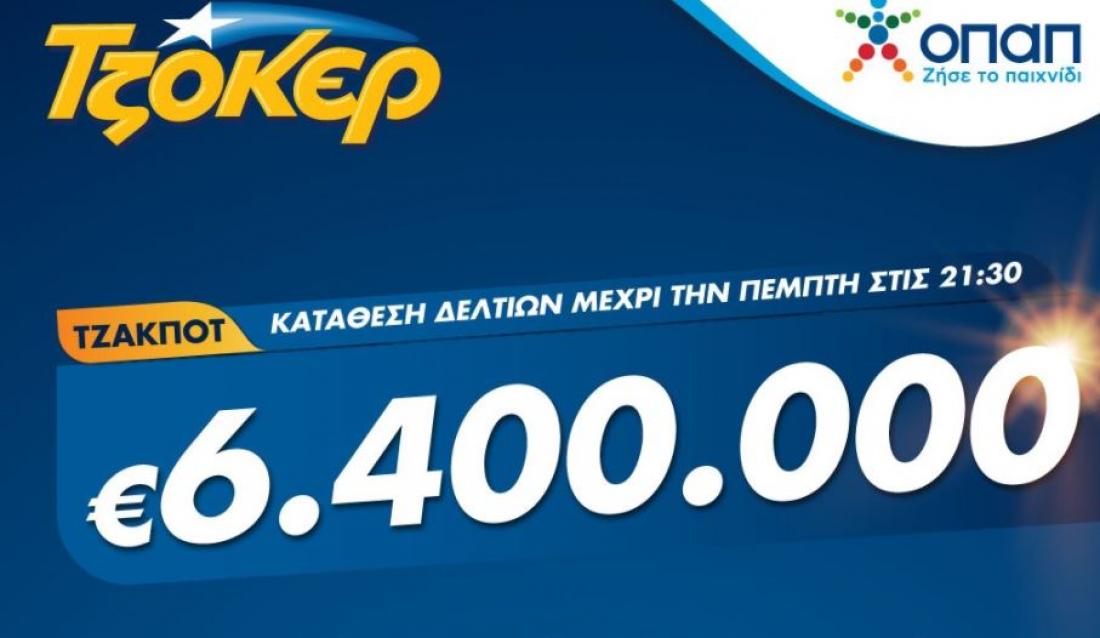 Το ποσό των 6,4 εκατομμυρίων ευρώ που μοιράζει απόψε το ΤΖΟΚΕΡ έχει συγκεντρωθεί ύστερα από 15 συνεχόμενα τζακ ποτ.