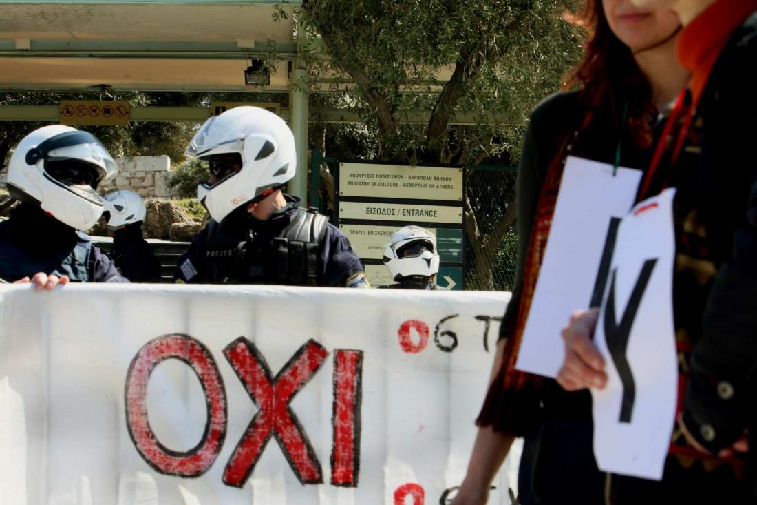 Νηπιαγωγοί, δάσκαλοι και καθηγητές έχουν κλείσει το δρόμο μπροστά από την είσοδο του υπουργείου ενώ παράλληλα, μέσα στο κτίριο πραγματοποιείται εκδήλωση - βράβευση μαθητών στο πλαίσιο του δεύτερου πανελλήνιου μαθητικού διαγωνισμού με θέμα «Κύπρος 1974-2015: Δεν ξεχνώ, Δημιουργώ, Διεκδικώ».