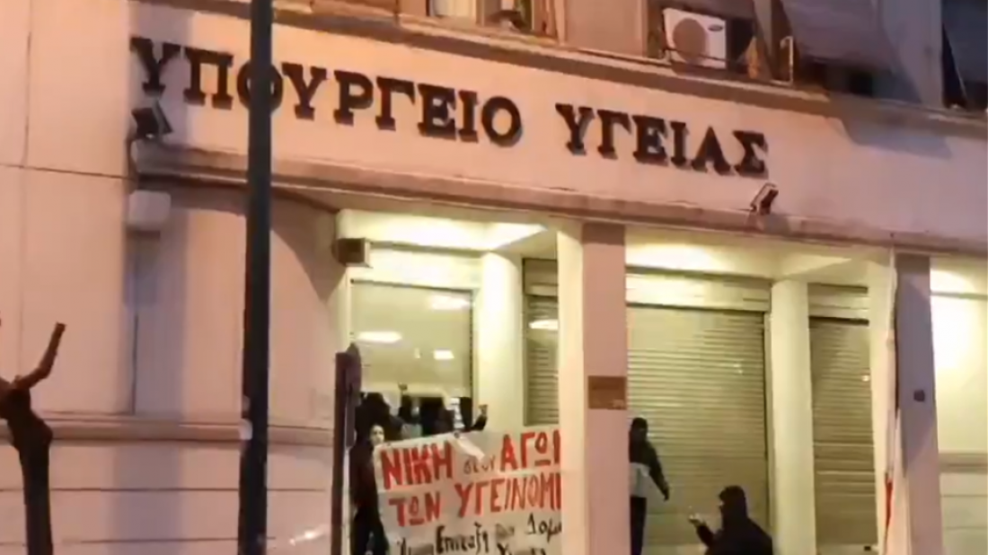 Παρέμβαση αναρχικών στο εσωτερικό του Υπουργείου Υγείας για την απεργία πείνας του Κουφοντινα και τη κρατική διαχείριση του covid.