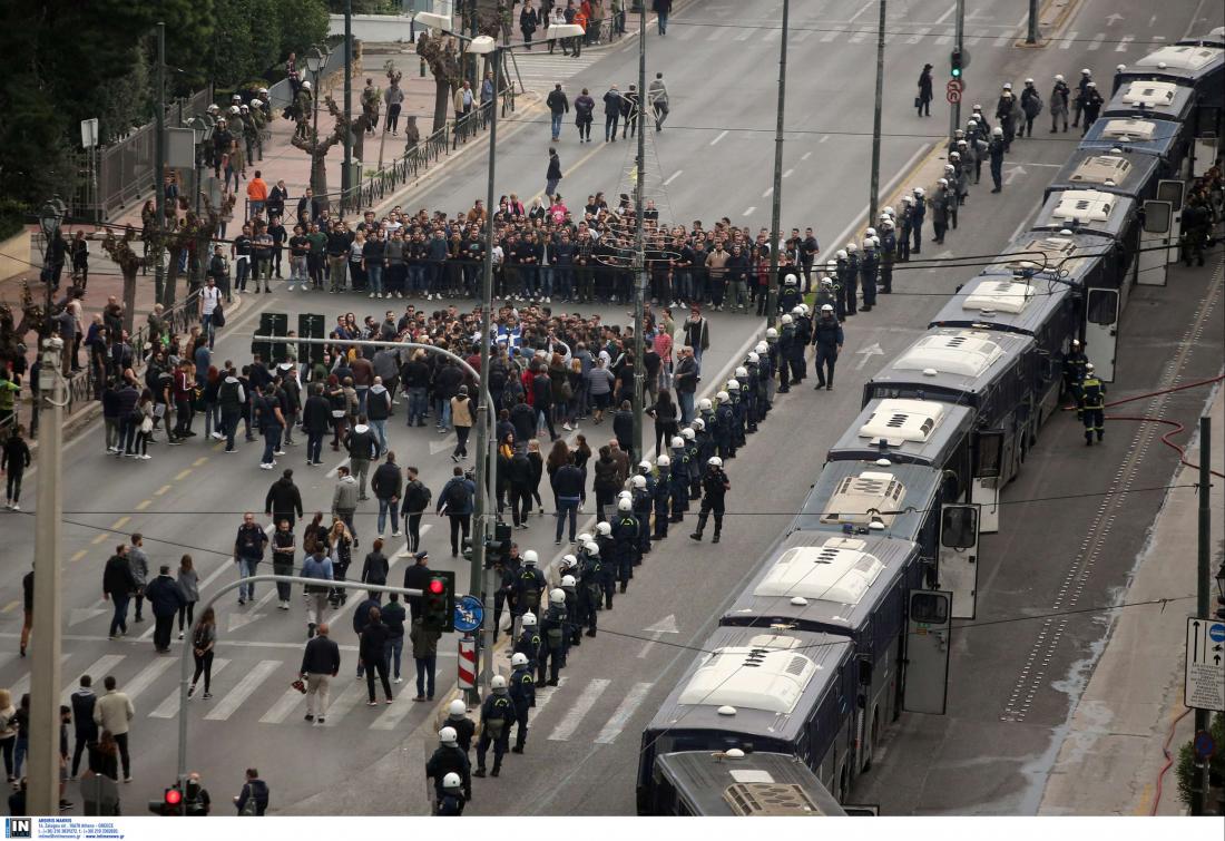 Οι διαδηλώτες αρχικά είχαν συγκεντρωθεί στη συμβολή των οδών Ιπποκράτους και Ακαδημίας, όπου και άνοιξαν τη σημαία φωνάζοντας «Αδέρφια ζείτε, εσείς μας οδηγείτε».