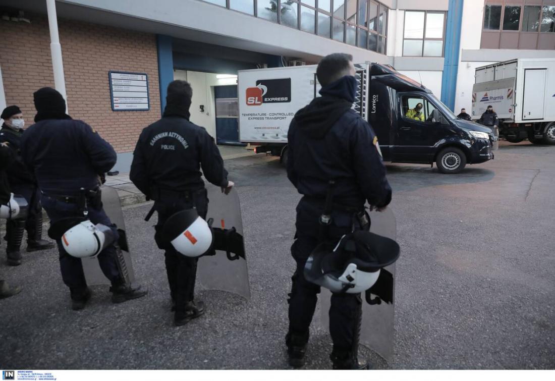 Λίγο μετά τις 7 το πρωί έφτασε η πρώτη παρτίδα των 9.750 δόσεων εμβολίων κατά της covid-19 από την εταιρεία Pfizer-BioΝTech σε κεντρική φαρμακαποθήκη στο Κρυονέρι της Αττικής. Τα εμβόλια παραδόθηκαν παρουσία του υφυπουργού Πολιτικής Προστασίας και Διαχείρισης Κρίσεων, Νίκου Χαρδαλιά, του υφυπουργού Υγείας, Βασίλη Κοντοζαμάνη και του γενικού γραμματέα Πρωτοβάθμιας Φροντίδας Υγείας, Μάριου Θεμιστοκλέους.