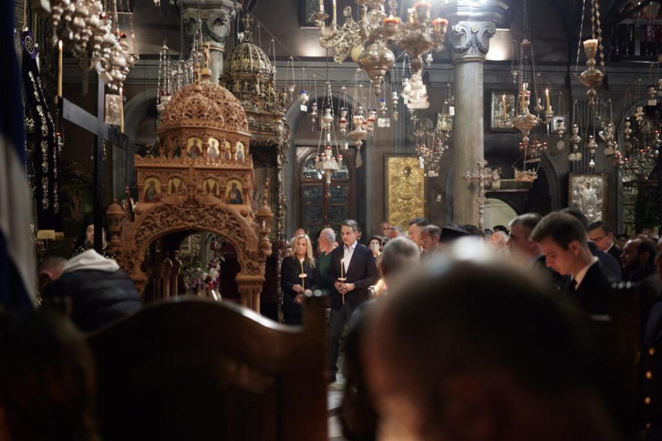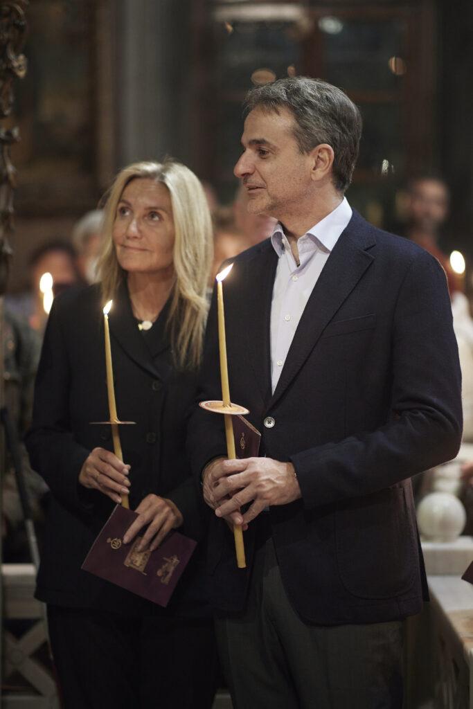 Ο Πρωθυπουργός, Κυριάκος Μητσοτάκης, συνοδευόμενος από τη σύζυγό του Μαρέβα Γκραμπόφσκι – Μητσοτάκη, παρακολούθησε την Ακολουθία και Περιφορά του Επιταφίου στον Ιερό Ναό Ευαγγελιστρίας Τήνου.
