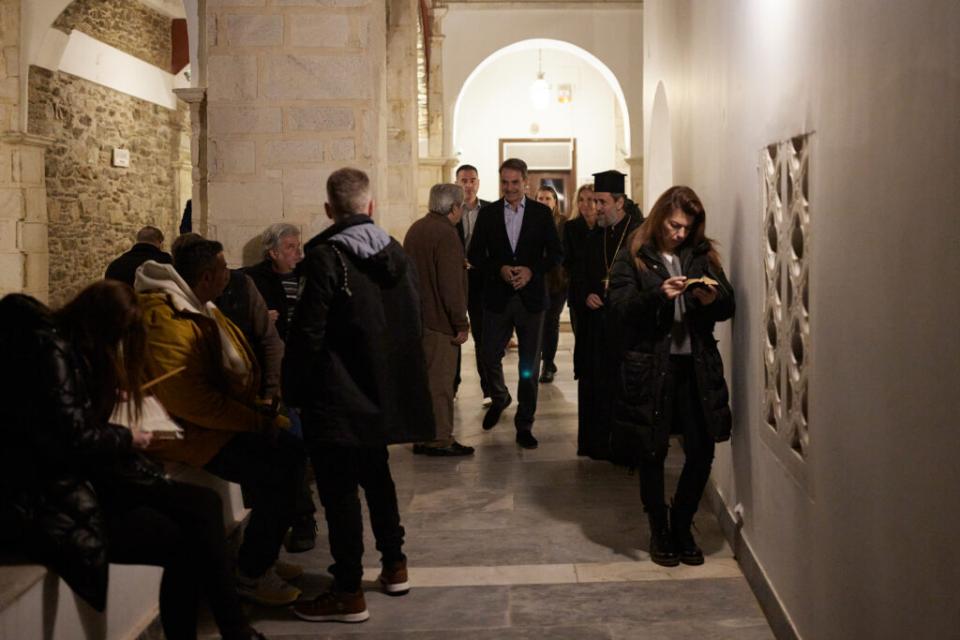 Ο Κυριάκος Μητσοτάκης επέλεξε την Τήνο, για να περάσει με την οικογένειά του ήρεμες στιγμές, τις ημέρες του Πάσχα, λίγο πριν τις εκλογές 2023. Στο πλευρό του, όπως φαίνεται στις φωτογραφίες, βρισκόταν η σύζυγός του, Μαρέβα και μαζί παρακολούθησαν την Ακολουθία και την Περιφορά του Επιταφίου, μέσα σε ένα κατανυκτικό κλίμα.