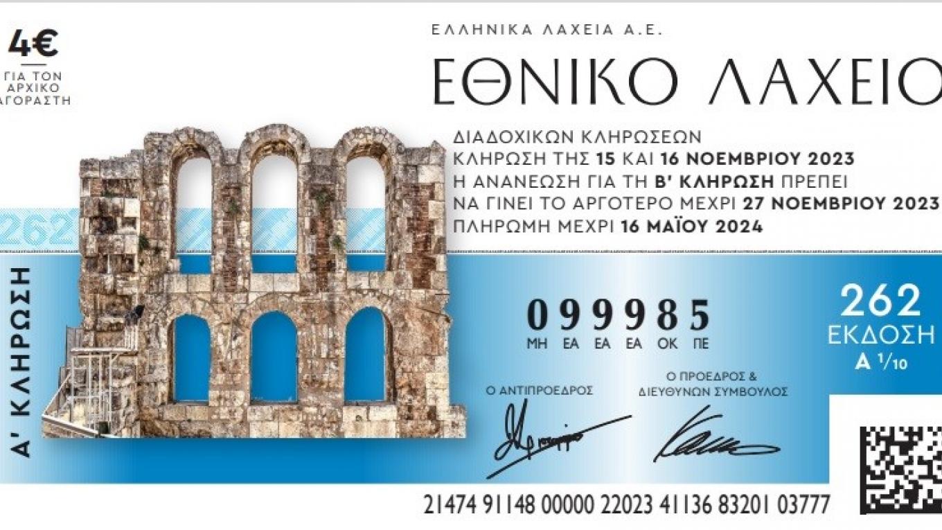 Το εγγυημένο έπαθλο του 1.000.000 ευρώ, καθώς και πολλά ενδιάμεσα κέρδη με μόλις 4 ανανεώσεις, διεκδικούν οι παίκτες του Εθνικού Λαχείου με τους λαχνούς της 262ης έκδοσης, η οποία είναι και η τελευταία για το 2023. Οι κληρώσεις της νέας έκδοσης ξεκινούν την Τετάρτη, 15 Νοεμβρίου, με τους λαχνούς του παιχνιδιού να είναι διαθέσιμοι στα καταστήματα ΟΠΑΠ και στους πλανόδιους πωλητές όλης της χώρας.
