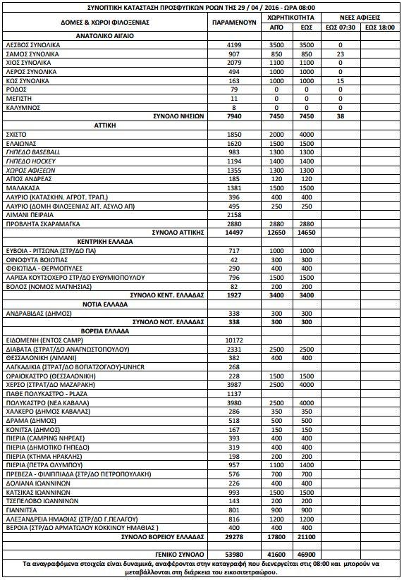 Σε 53.980 ανέρχονται οι πρόσφυγες και μετανάστες που βρίσκονται στην Ελλάδα σύμφωνα με την τελευταία επίσημη καταγραφή. Οι 10.172 από τους πρόσφυγες και μετανάστες βρίσκονται στην Ειδομένη.